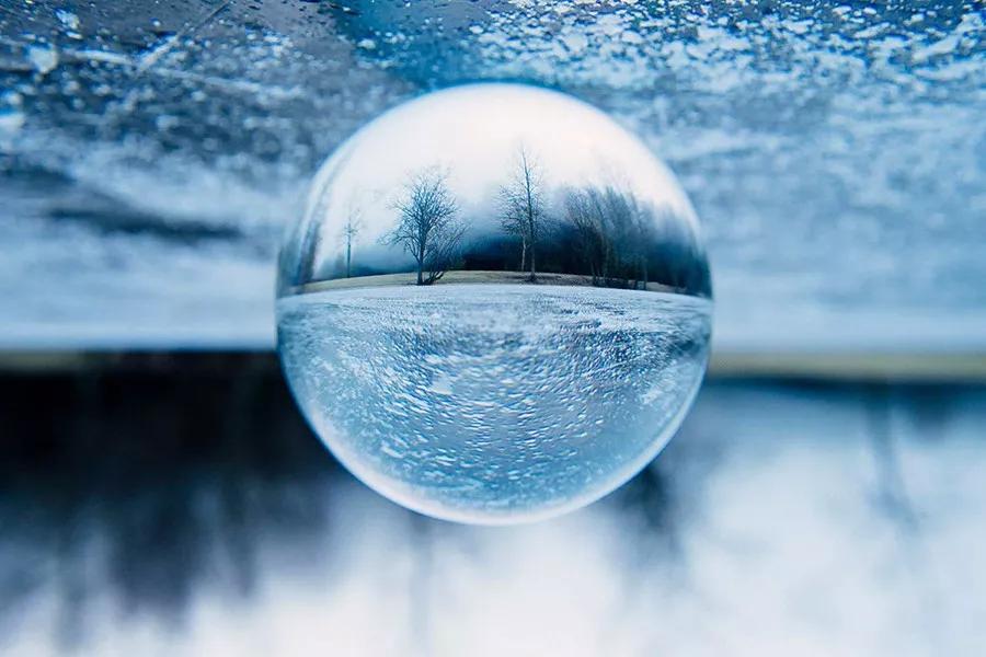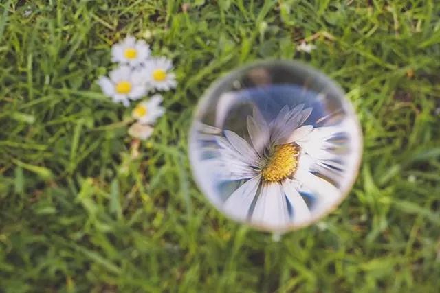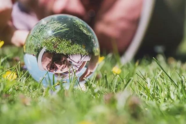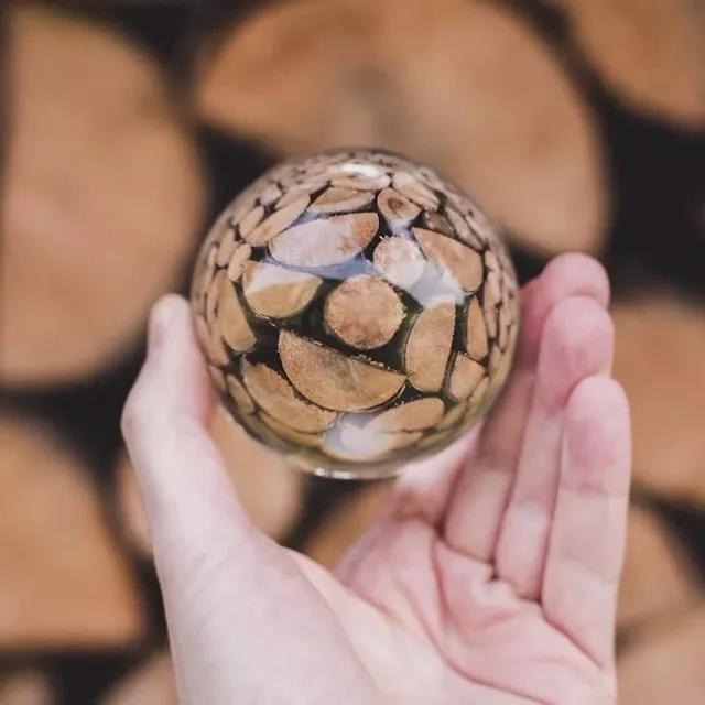 使用水晶球進(jìn)行聚焦,不僅可以實(shí)現(xiàn)放大,還可以利用畸變來使紋理產(chǎn)生一定的變化感;再利用小/清晰虛像與大/模糊實(shí)景的對比,會讓作品顯得更有趣。