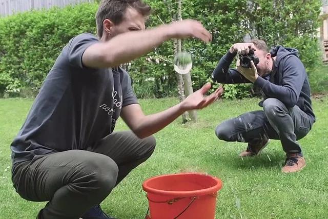 不斷調(diào)整拍攝角度和球體位置,你會發(fā)現(xiàn)球內(nèi)的分界線位置也會不斷發(fā)生變化。你需要選擇一個(gè)角度,使球體倒影和現(xiàn)實(shí)中的分界線重合。