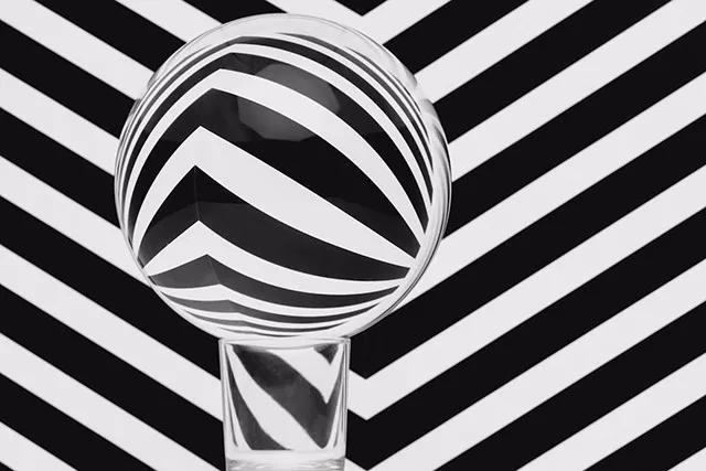 你也可以“定制”背景,用電腦設(shè)計(jì)一些平行/交錯(cuò)/粗細(xì)變化的線條組,打印出來后作為背景,放入水晶球進(jìn)行拍攝。