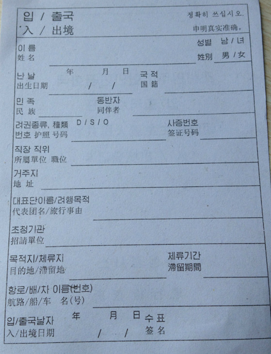 乘坐火車從丹東進入朝鮮,會在新義州站發放臨時旅游卡代替簽證,護照不留有朝鮮簽證。大部分旅行社也會要求游客至少提前15天報名。