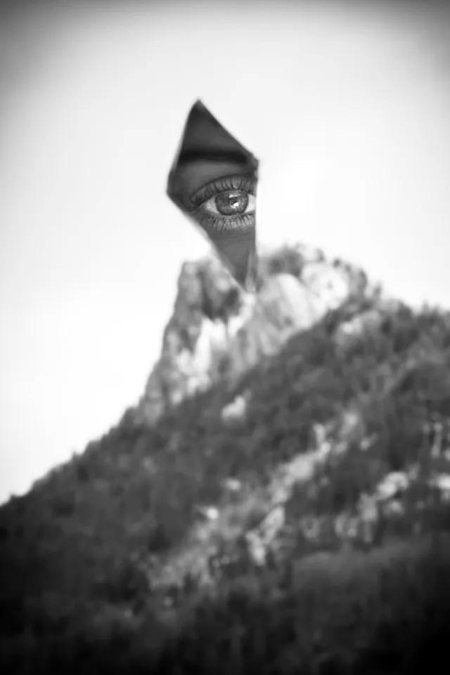 你也可以把窗戶(或車窗)擦干凈,把鏡子碎片貼在上邊,創造出“眼睛+風景”的蒙太奇鏡頭: