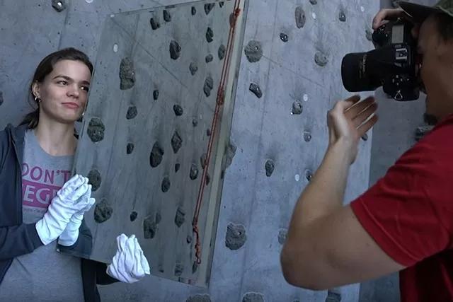 你也可以讓拍攝對象的對面站另一個人,通過“雙重反射”,把倆人的五官疊加在同一位置上,創造奇幻的效果。當然,你需要不斷調整角度,才能實現這一拍攝目的。