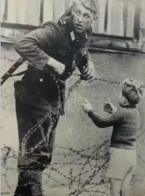 戒備森嚴的戰爭里,一個士兵正偷偷幫助一個小男孩翻過鐵網,和家人團聚。
