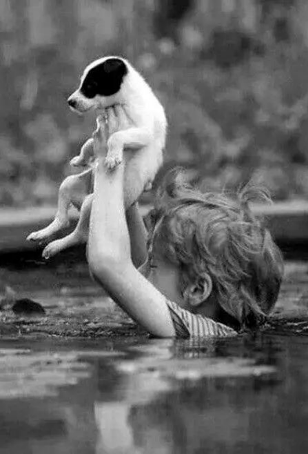 為了救落在水里的小狗,他甚至忘記了自己此刻也很危險。