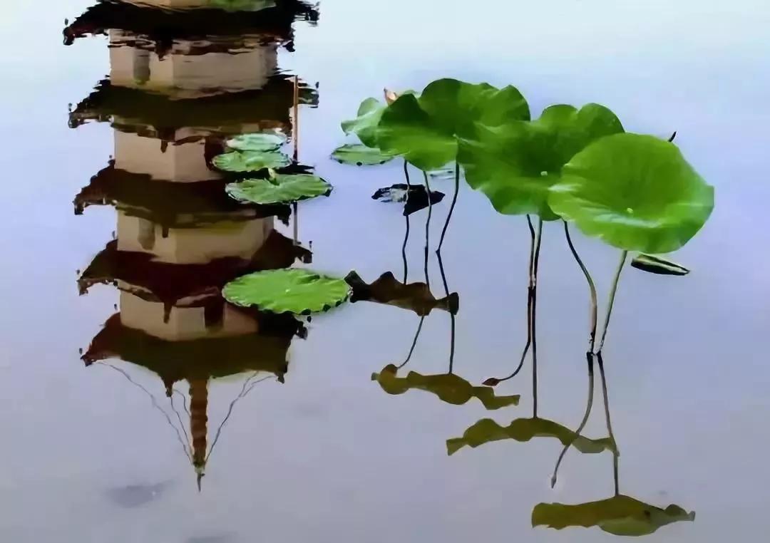 疏朗的荷塘,婷婷玉立的荷葉,微風吹來微微翻動,最具中國風的荷塘,滿是詩情和畫意,巧妙地利用水中倒影,容易構圖一種中國畫的意味。