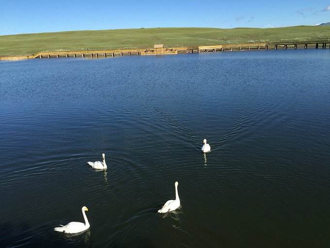 春天的賽里木湖,一半是湖水一半是冰面,湖邊依然堆積著白雪,湖中天鵝嬉戲,陽光灑下,猶如畫作般精致。