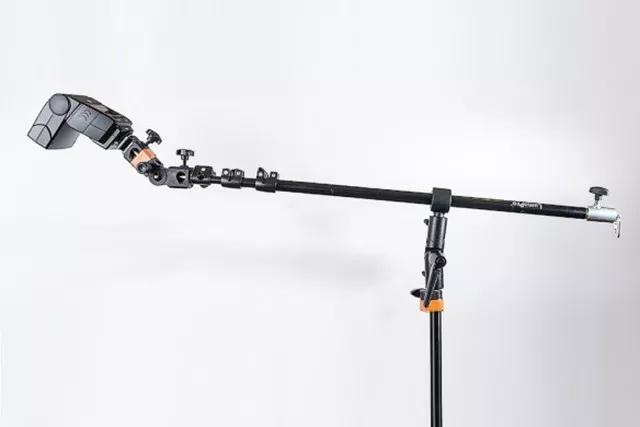 如果有燈架,把閃光燈放在燈架上——最好是拿著帶吊臂的,這樣可以讓你的閃光燈實現(xiàn)更多角度的自由照明;沒有專業(yè)的燈架的話,至少也要把閃光燈放在平整、穩(wěn)固的平面上,以確保它不會翻倒。