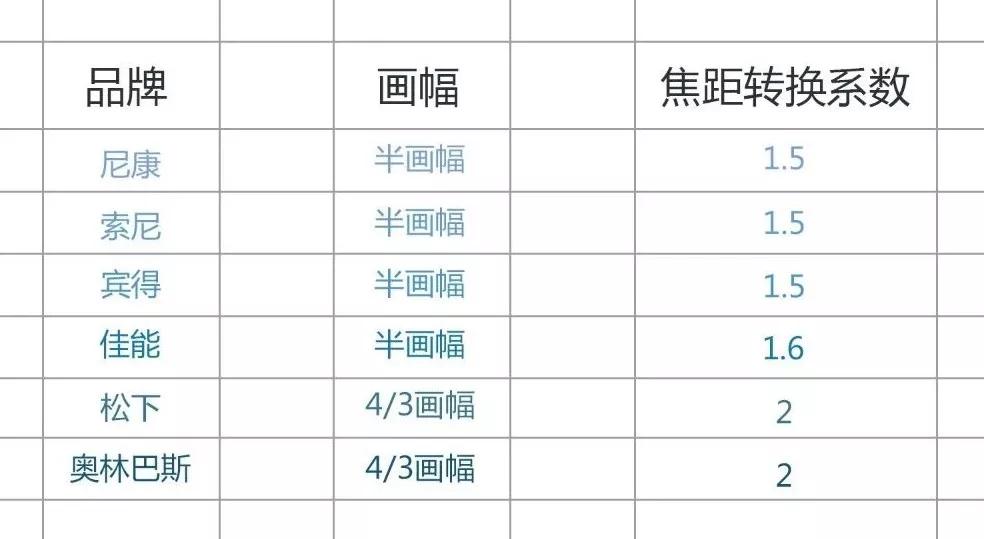 那么,如何進行有效的轉換?可以看下各大相機品牌的轉換系數。
