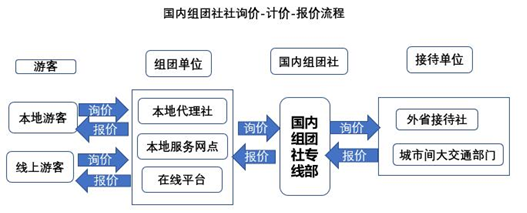 國內組團社專線部在內部計價的基礎上加上利潤向服務網點、同業旅行社、在線平臺報價。