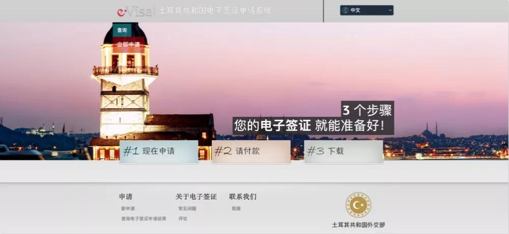 登錄土耳其共和國電子簽證申請網(wǎng)頁:https://www.evisa.gov.tr/zh/