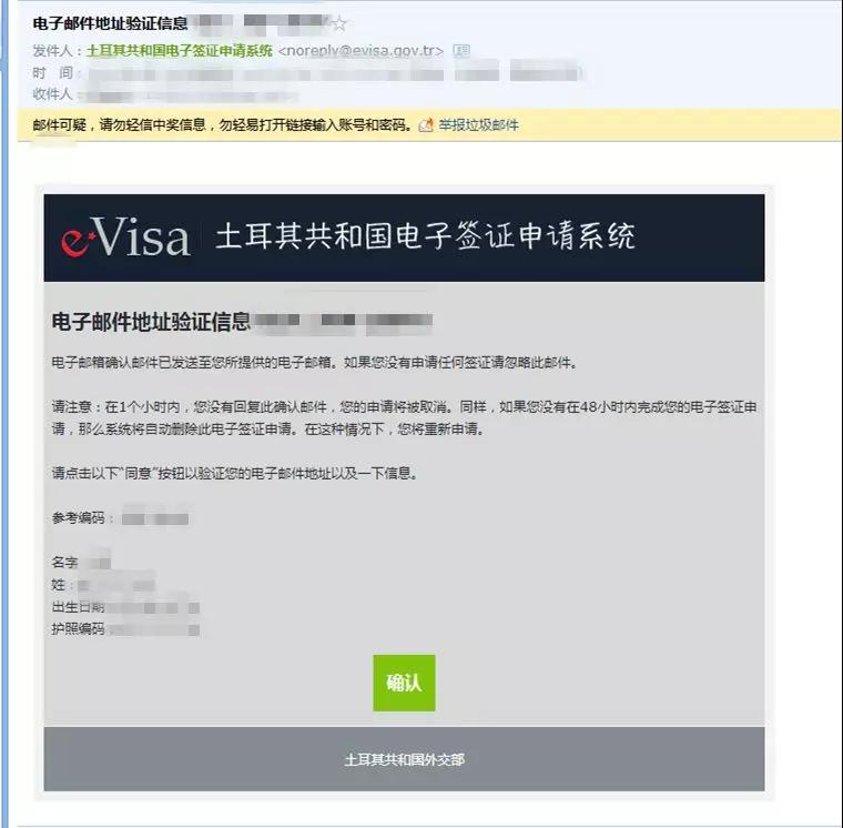 注:需要在1小時內(nèi)確認(rèn)此郵件,并在48小時內(nèi)完成電子簽證的申請,否則簽證將被取消。