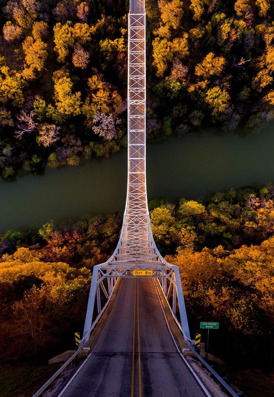 他將同一角度拍攝的航拍照片與普通的照片上下合并,創造出了類似于平行宇宙的效果。