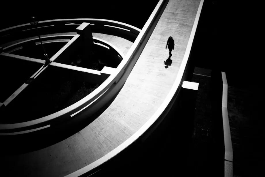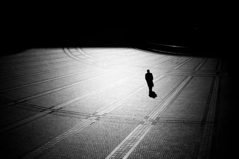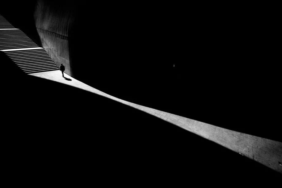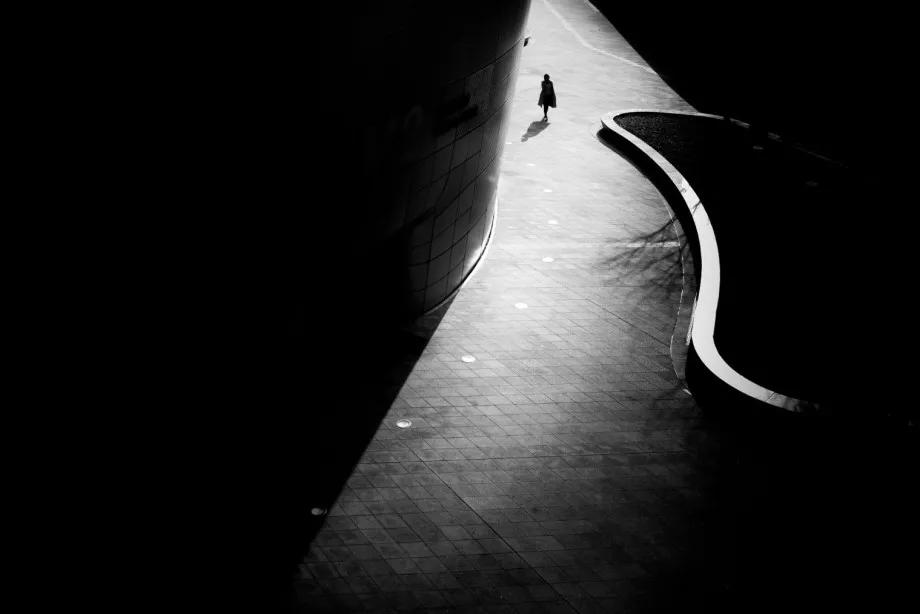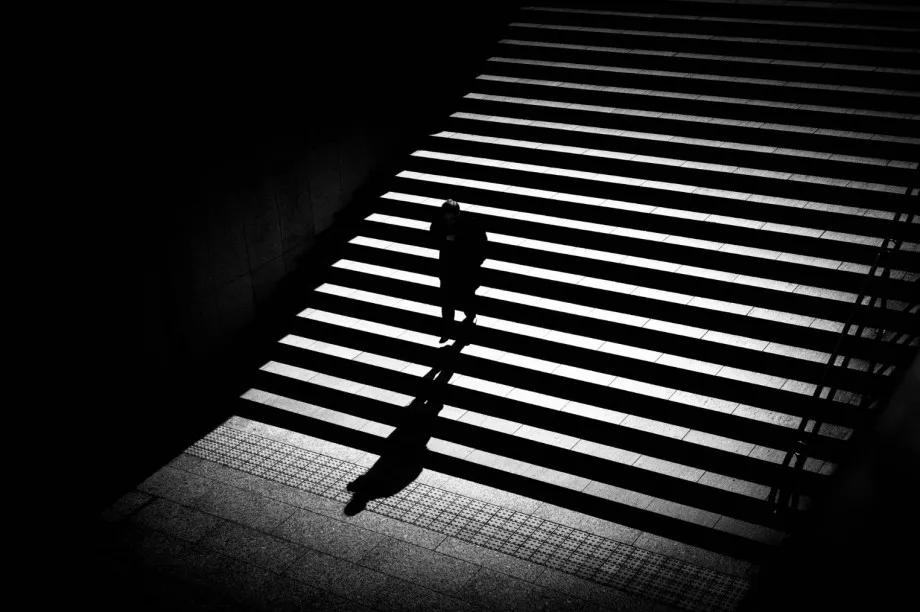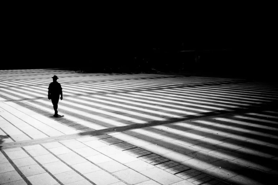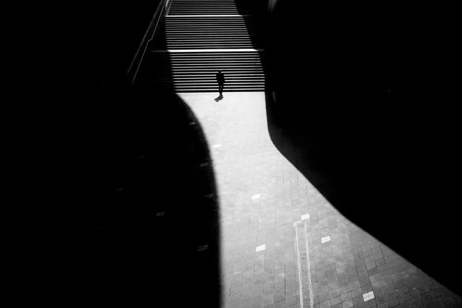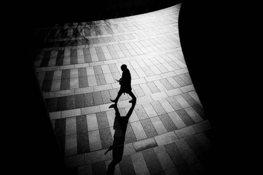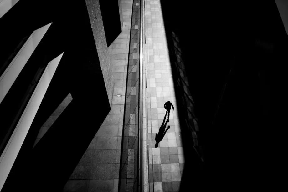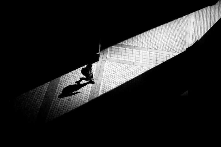 攝影圖片:攝影師Junichi Hakoyama十分擅長拍攝高對比度黑白街頭作品,善于利用場景中建筑物的線條,結(jié)合光影而形成明暗對比,加上充滿故事性的單個人物融入其中,便成就影像擁有黑白默片的快感。