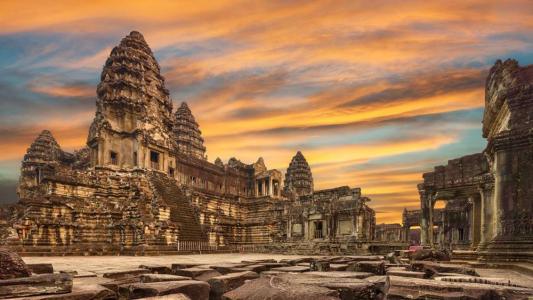 傍晚時分前往吳哥【巴肯山】賞落日,登上巴肯山頂,遠眺宏偉的吳哥古城,沐浴在金色陽光中。