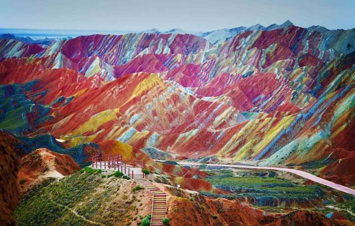 后乘車赴【七彩丹霞】,位于張掖市臨澤肅南縣境內(nèi),面積約510多平方公里,其中彩色丘陵面積約40平方公里;