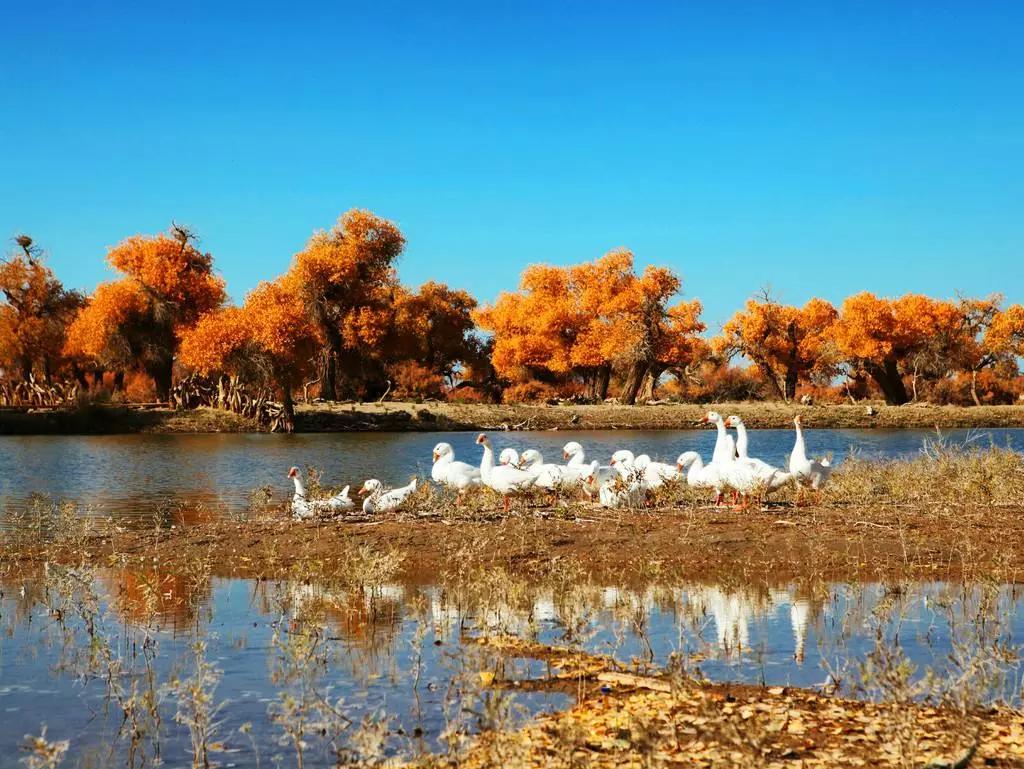 【行程景點介紹:金塔胡楊林】金波湖碧波蕩漾、胡楊林金碧耀眼、沙棗花清香撲鼻、野生動物種類繁多、紅柳紅研秋醉、蘆荻白花寒吹、沙灘柔綿、陽光迷人,來此地游覽,您能充分領略大漠風情,鑒賞胡楊文化,這里是集生態造林、防風固沙、餐飲娛樂、休閑度假、攝影創作、觀光旅游為一體的旅游勝地,被評為甘肅省秋色最美的地方之一。
