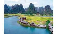 乘車(chē)參觀中國(guó)第一個(gè)申報(bào)“雞血玉”產(chǎn)品標(biāo)準(zhǔn)通過(guò)國(guó)家管理部門(mén)備案的桂林特色產(chǎn)業(yè)點(diǎn)【雞血玉博物館】約150分鐘,桂林獨(dú)有特色產(chǎn)業(yè),館內(nèi)珍藏雞血玉10萬(wàn)余件,總投資10億元人民幣。贈(zèng)送游覽原汁原味、原生態(tài)、具有濃郁廣西少數(shù)民族風(fēng)情的——價(jià)值120元【經(jīng)典劉三姐大觀園】(贈(zèng)送景點(diǎn),不游不退),AAAA級(jí)(約70分)以歌會(huì)友、以歌傳情、以歌為媒,體驗(yàn)與美麗的劉三姐對(duì)歌比試,被三姐相中的幸運(yùn)游客還可得到拋出的繡球。后赴桂林市民超市自由閑逛購(gòu)買(mǎi)當(dāng)?shù)赝撂禺a(chǎn)饋贈(zèng)親友!