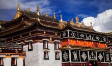 郎木寺是一座風(fēng)情小鎮(zhèn),在四川和甘肅兩省的交界處,周圍被草原、樹林、山丘、紅色的石崖圍繞,環(huán)境優(yōu)美,是許多信教徒心中的朝圣圣地。一條小溪從鎮(zhèn)中流過,雖寬不足2米,名“白龍江”。溪北是甘肅的“賽赤寺”,南岸屬四川若爾蓋縣的格爾底寺,中間夾著回族的清真寺,兩個(gè)藏傳佛教的寺廟在這里隔江相望。一條小溪融合了藏、回兩個(gè)和平共處的民族,喇嘛寺院、清真寺各據(jù)一方地存在著,你有你的曬大佛,我有我的做禮拜,小溪兩邊的人們各自用不同的方式傳達(dá)著對信仰的執(zhí)著。