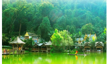園內森林覆蓋率超過 98%,是個天然的大氧吧。氣候溫暖濕潤,樹木蔥蘢,蔓藤盤根錯節,不少珍禽異獸,如亞洲象,犀鳥,孔雀,黑冠長臂猿都生活在這片熱帶叢林里。品種繁多的熱帶植物遮天蔽日,龍樹板根、獨木成林、老莖生花、植物絞殺等植物奇觀異景隨處可見,峽谷幽深、烏鳴山澗、林木蔥茂、湖水清澈,讓您真切感受到大自然的神秘。愛伲寨的搶親、潑水節的歡暢、各民族的歌舞表演,任游客親身參與,使游客置身于濃郁的民族風情中留連忘返。孔雀開屏迎賓,猴子與人嘻戲,黑熊、蟒蛇、蜥蜴、穿山甲等珍稀動物,讓您見識真正的動物王國,讓游客充分感受人與自然、人與動物的和諧相融。