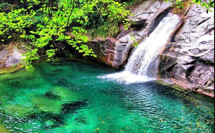 翡翠谷,又稱“情人谷”,位于黃山風景區南大門湯口鎮山岔村,峽谷中分布著一百多個彩池,彩池在陽光的照耀下絢麗多彩,遠處看來,這些河谷貌似一顆顆碧綠的翡翠鑲嵌在峽谷之中,故而得名翡翠谷。
