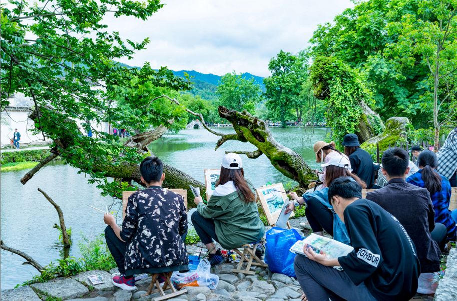 都可以看到來(lái)宏村寫(xiě)生的學(xué)生,