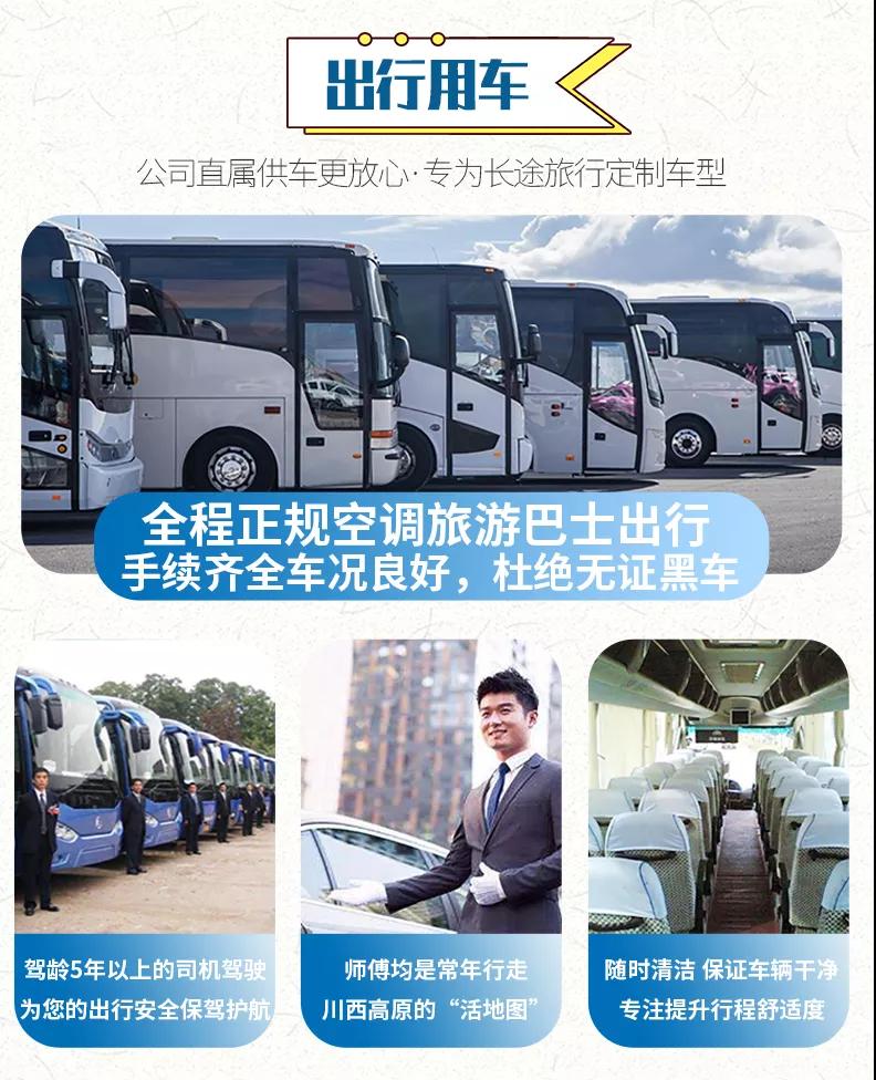 1、關(guān)于車(chē)輛交通:目前四川旅游市場(chǎng)8座以下車(chē)輛無(wú)法辦理旅游牌照,請(qǐng)游客知悉,以此理由提起的投訴我方拒不受理,望您諒解。
