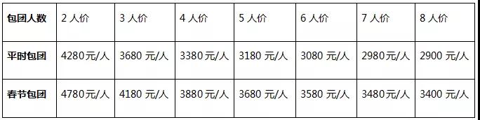 春節(jié)驚喜價(jià):成人3180元/人 兒童價(jià)1480元/人 單房差900元/人
