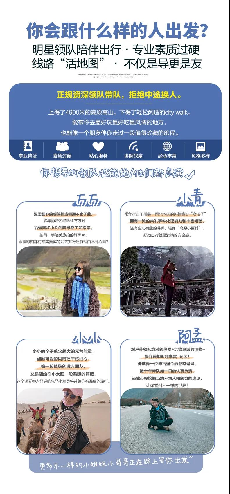私人訂制:我們客戶范圍囊括了全國各大城市,川西、西北、東北,皖南,貴州,在路上永遠有我們的身影。我們將為每一個有定制需求的你策劃出獨屬于自己的完美旅行。