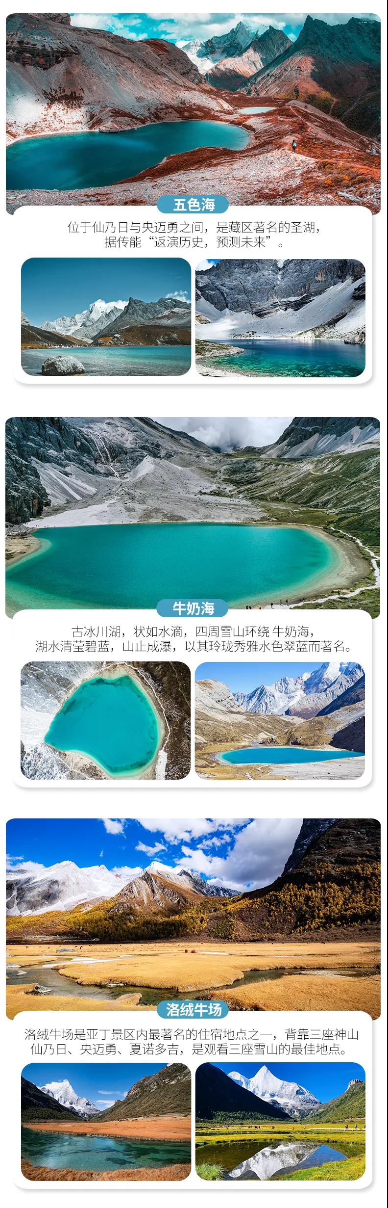 2. 因亞丁景區內無法提供用餐,景區內中餐請自理,游客可提前自備干糧。