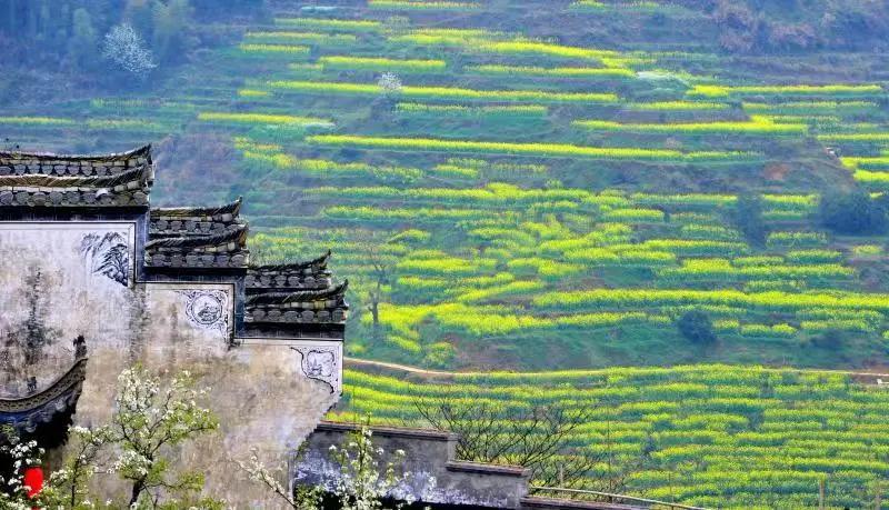 徽韻與油菜花共同演繹著春色,仿佛穿越回了古代,回到了舊時的徽州古村。