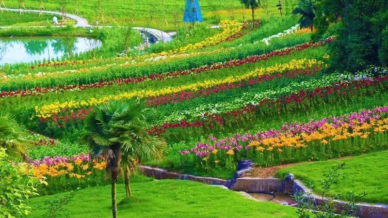 人們漫步花海,親近花朵,青翠、艷麗了色彩讓忙碌者的心靈得到凈化,緩解了工作的壓力。路旁,五顏六色的花朵,似云似霞,一陣風來,衣裙迎風回旋,馨香撲鼻……