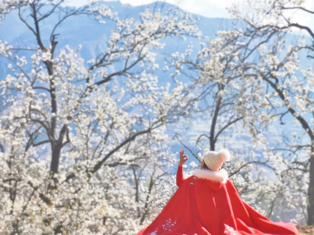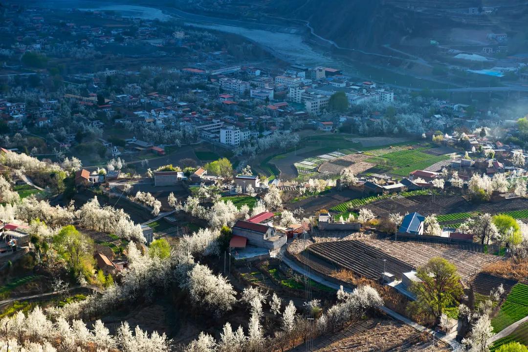 我們的團期是金川最好的時節,萬物復蘇的初春三月,正值金川成千上萬棵梨樹花期,雪白色的梨花競相開放,一片片、一層層的鋪散開來,漫山遍野的白色花海中夾雜零星新綠,空氣中氤氳著梨花清香,眼是天堂,身亦是天堂。
