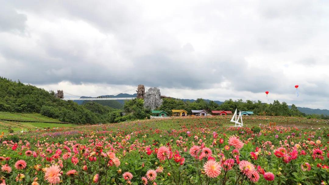 彝山花谷景區依托現有的紫薇花、大麗花、芝櫻花、玫瑰花等花卉資源,結合壯觀的玻璃吊橋、植物迷宮、玻璃棧道、“心”型觀景平臺等人文景觀資源,根據不同的時節,打造月月有花、四季花開的旅游景區。