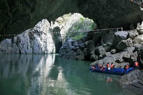 早餐后,乘車約2小時抵達【九洞天景區】(游覽時間約3-4小時)景區生態景觀秀美、溝壑縱橫、植 被發育、伏流明暗交替,洞洞相連,組合成集溶洞、伏流、天窗、天坑、峽谷、天生橋、懸崖、絕壁、峰叢幽谷等為一體的雄奇瑰麗的巖溶大觀。在這一段長約2公里的六沖河河道上,箱形切割頂板 多處塌陷,形成了多個形狀、大小各異的天窗、天坑,是已發現的天窗天坑最密集的溶洞群,是可供乘船游覽最高大的溶洞群。