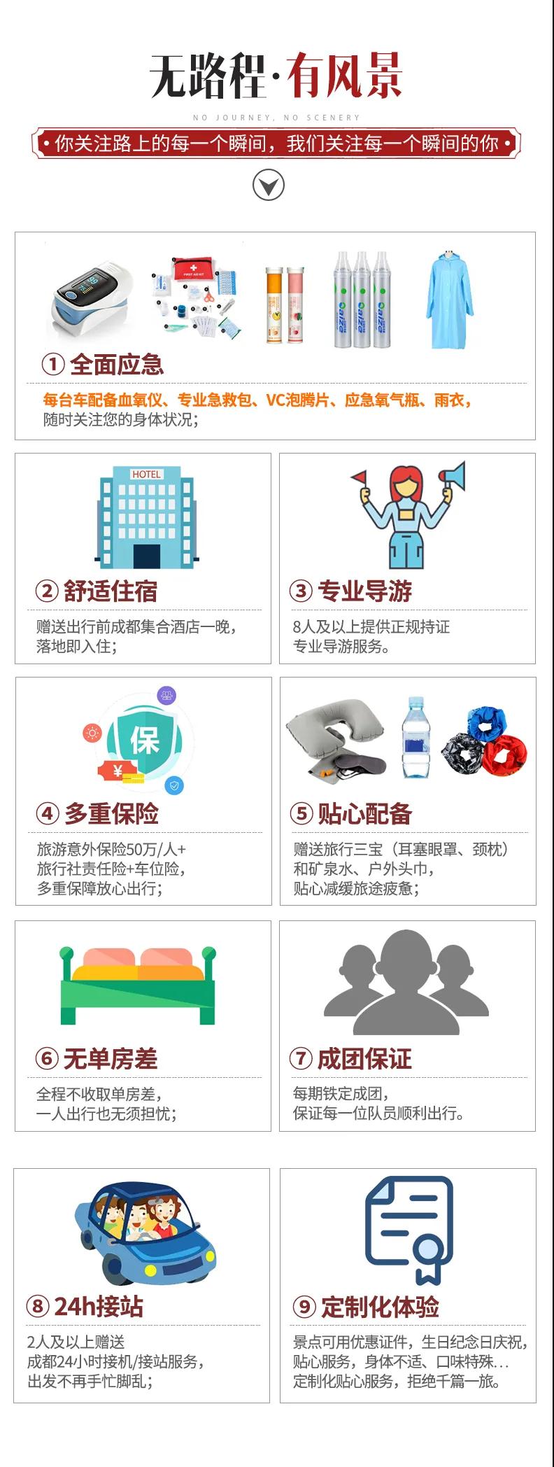 4、如途中遇不可抗因素(如高原反應、修路、塌方、車輛事故阻礙等)我方有權根據情況調整行程線路走向,此舉均是根據帶隊經驗為大家更順利的游玩而做出的改變,希望大家理解和支持,但如造成額外費用由客人自理,望您諒解;若對行程造成影響的,我方將全力協助游客進行解決,但不承擔由此造成的損失,若因此而增加的費用,敬請游客自理。
