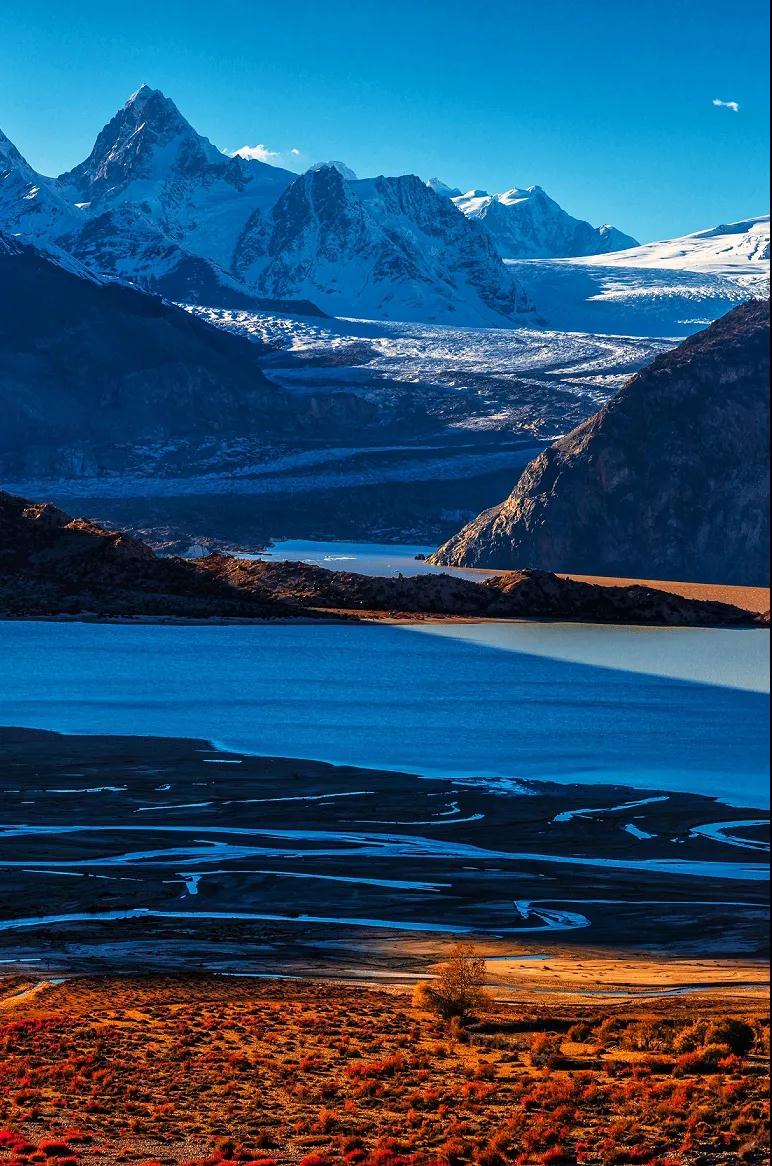 【羊卓雍措】便是大家熟知的羊湖,與瑪旁雍措、納木措并稱西藏三大圣湖,藏傳佛教中有著轉山轉水轉佛塔的習俗,也因此,這里常年都有信徒虔誠的圍湖朝圣。抵達這面晶瑩奇幻的蔚藍色寶鏡,相信我,你一定會驚嘆歡呼。碧藍湖水連綿山巒與湛藍天空在盡頭交接,這個在藏人心中被看做是“神女散落的綠松石耳墜”的圣湖微波粼粼,在藍天白云映襯下,這抹憂郁藍更加純粹清冽,果如一塊清透的綠松石。作為喜馬拉雅山北麓最大的內陸湖泊,羊湖湖光山色之美被稱“冠絕藏南”,轉湖踱步,靜靜感受羊卓雍措這純粹的美。