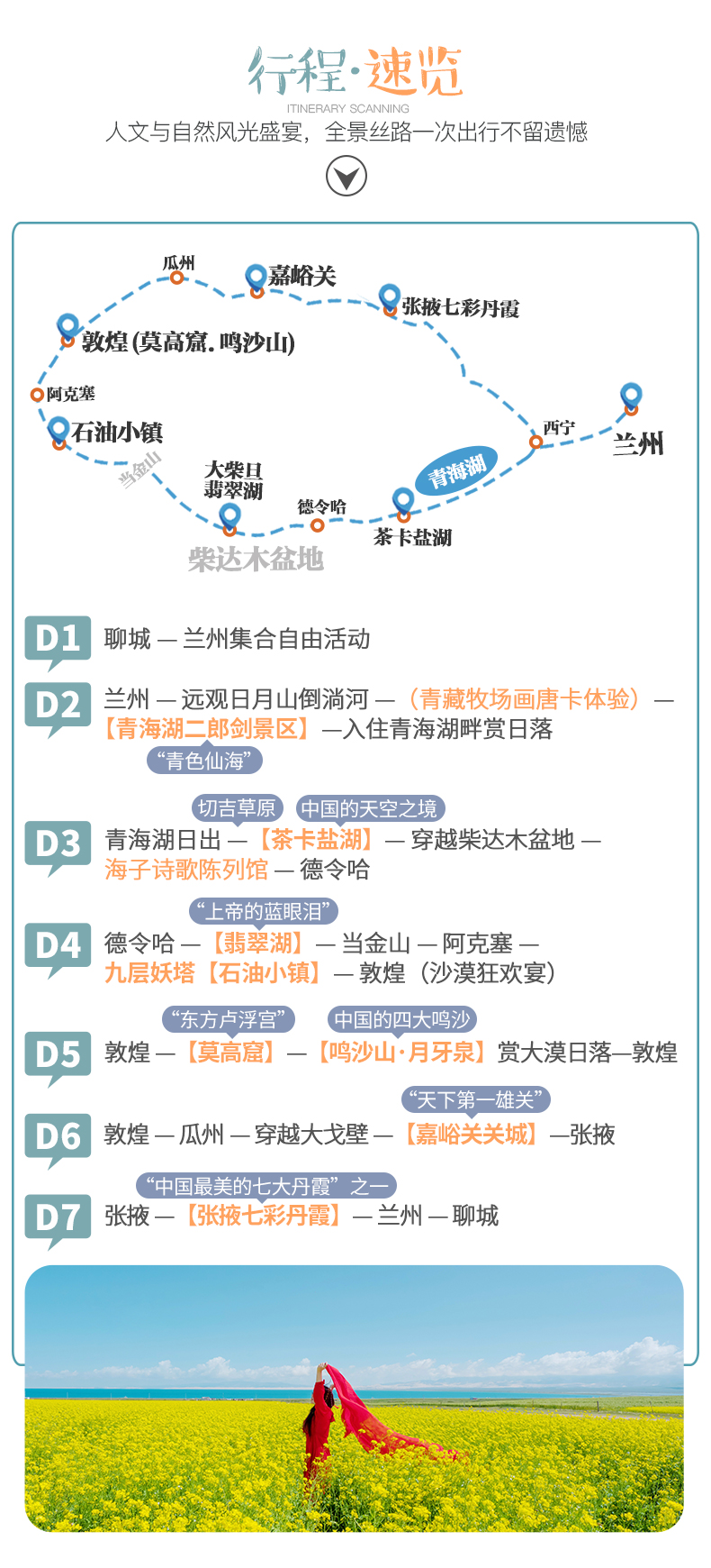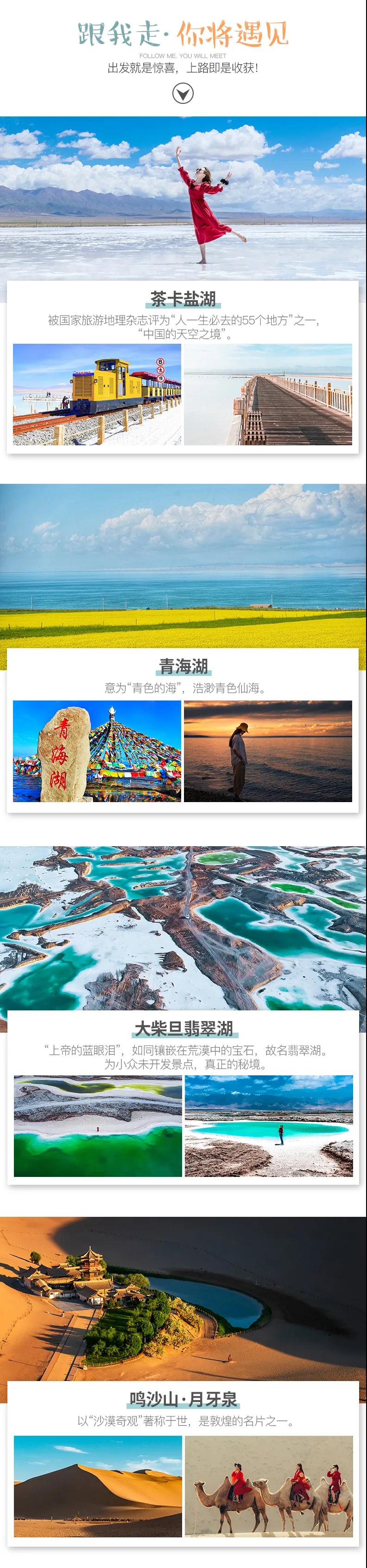 青海湖+茶卡鹽湖+莫高窟+大柴旦翡翠湖+張掖七彩丹霞+鳴沙山月牙泉+嘉峪關+九層妖塔石油小鎮經典絲路