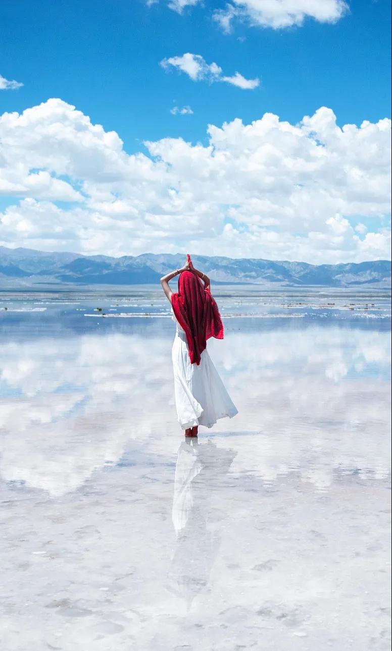 茶卡鹽湖被國家旅游地理雜志評為“人一生必去的55個地方”之一,這里的采鹽歷史非常悠久,湖水含鹽量很大,湖面上會自然結晶,一片純白。結晶之上是一層薄薄的露水,將天空、云朵和對岸的山都倒映在白色的湖里,非常漂亮,所以也被稱為“中國的天空之境”。大家可以乘坐景區內的小火車前往景區深處游玩,如果不乘坐小火車,沿著鐵軌向湖深處散散步拍拍照片也是非常愜意的。