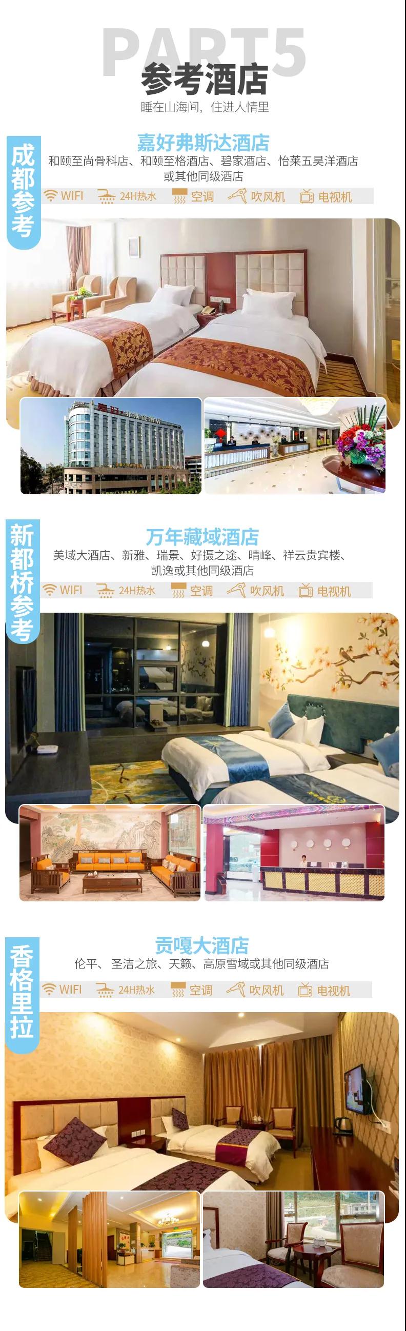 3、行程中所列酒店是根據當地的旅游實際接待條件而做出的相應星級評價,不代表官方依據。除游客特別要求掛星以外,均為預備星級(即準星級)。