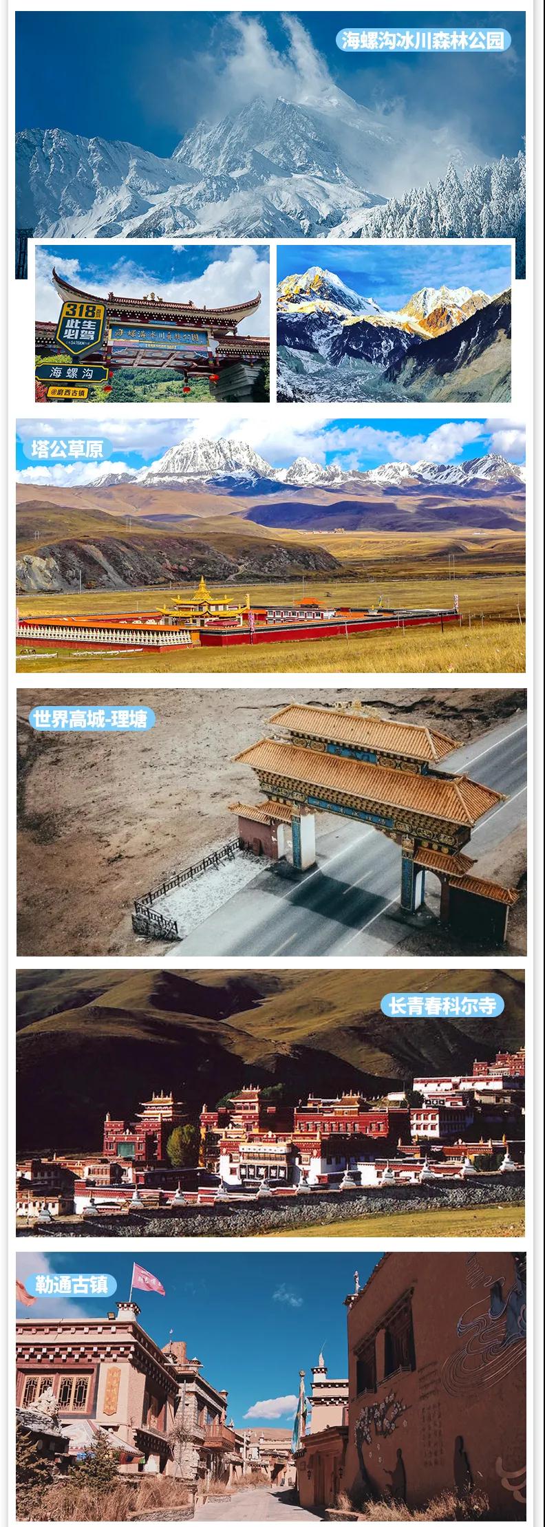 稻城亞丁+新都橋+理塘+瑪尼河谷+墨石公園+塔公草原+海螺溝冰川森林公園+天路十八彎