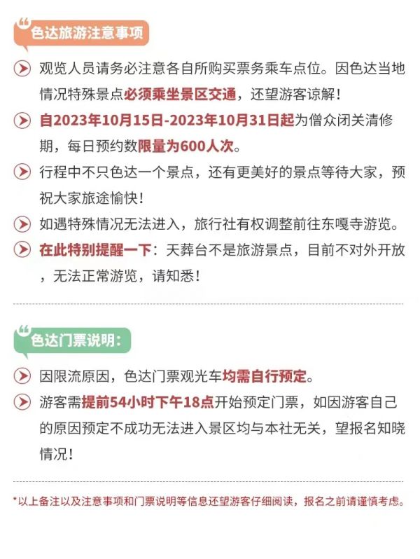 注:以上備注以及注意事項和門票說明等信息還望游客仔細閱讀,報名之前請謹慎考慮。
