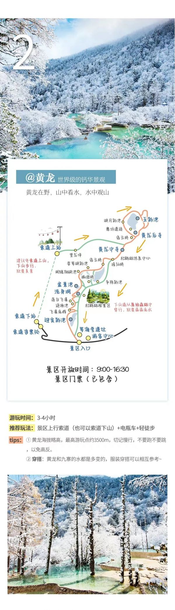 (4)冬季黃龍景區索道停運,游覽景區以徒步游覽為主,游客朋友根據自身體力進行選擇游玩量力而行。