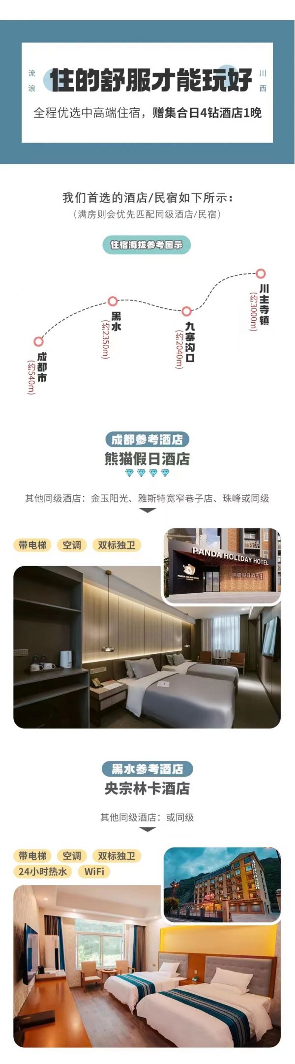 ? 住宿:九寨溝口或川主寺鎮