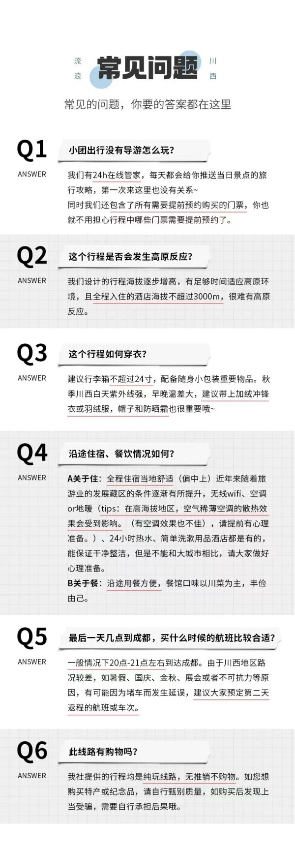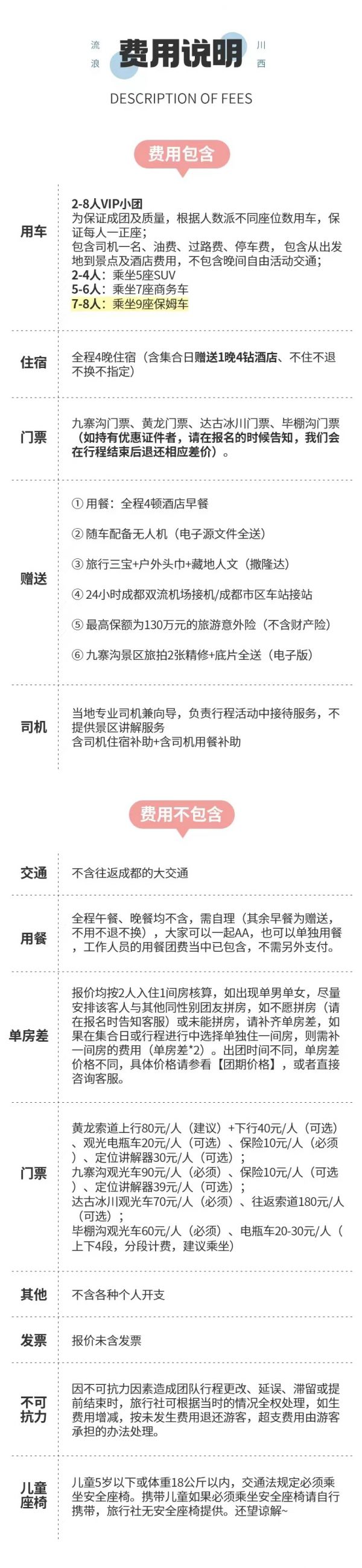 (1)受天氣、堵車等客觀因素影響,當日回成都比較晚,請盡量不預訂當天的返程機票或火車票,以免因為堵車給您帶來沒有必要的損失。