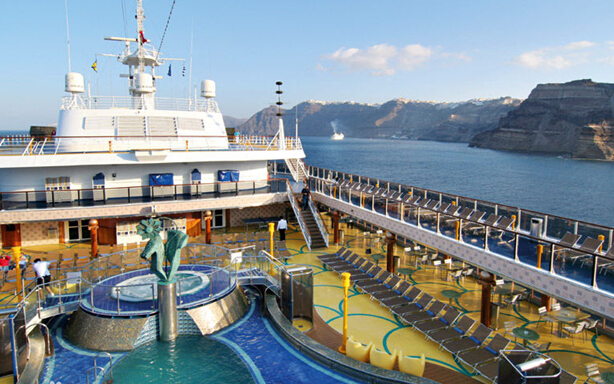 19、甲板椅以及太陽椅它們是設置在甲板上的。環世旅游網要求您在不使用他們的時候不要將您的個人物品放置在那里。游泳池提供毛巾,請您在使用完畢后放置在相應的收納處。