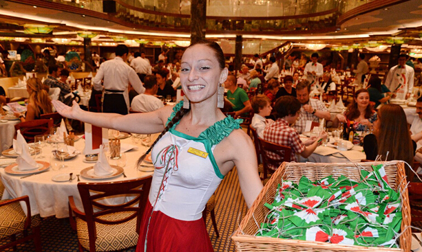 4、希望在客艙內享用歐式早餐的游客,可在就寢前填寫點菜單并將其掛于門外把手。這項服務將按點菜單指定的時間免費提供。特殊早餐(僅在特定的船上)如果你想要在客艙內享用一頓為特殊情況準備的早餐,你可以在多種新鮮水果和果汁中進行選擇,一頓浪漫的由紅玫瑰點綴的早餐,帶有魚子醬,大馬哈魚,以及香檳!特殊早餐將由您的歌詩達卡付費。