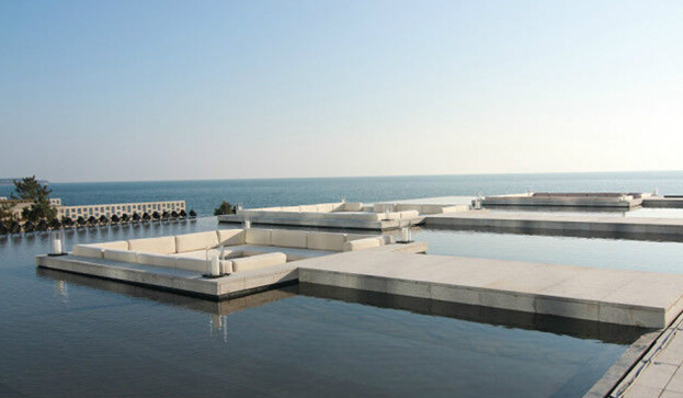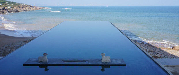 不同于其它觀光飯店或連鎖度假酒店的金碧輝煌或奢華建筑,青島涵碧樓是鄉林集團再度攜手日月潭涵碧樓設計大師Kerry Hill,在中國打造的首家酒店,依山傍海,每間房間有100平米的大空間,延續日月潭涵碧樓建筑的極簡風外,還保有并融合當地自然景觀,像是黃島區金沙灘的沙灘,巖盤全數保留,鮑魚池,變成飯店的特色規劃之一。