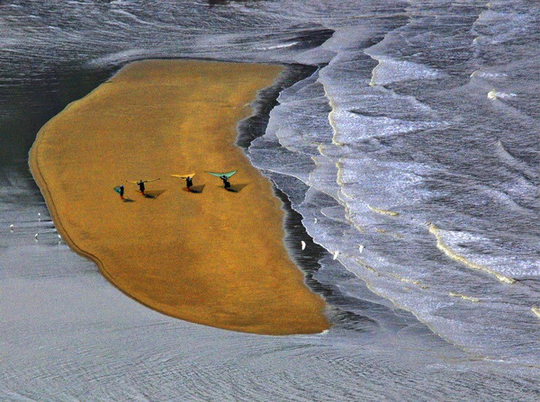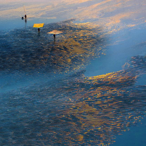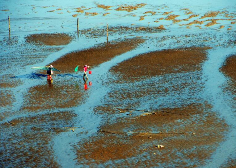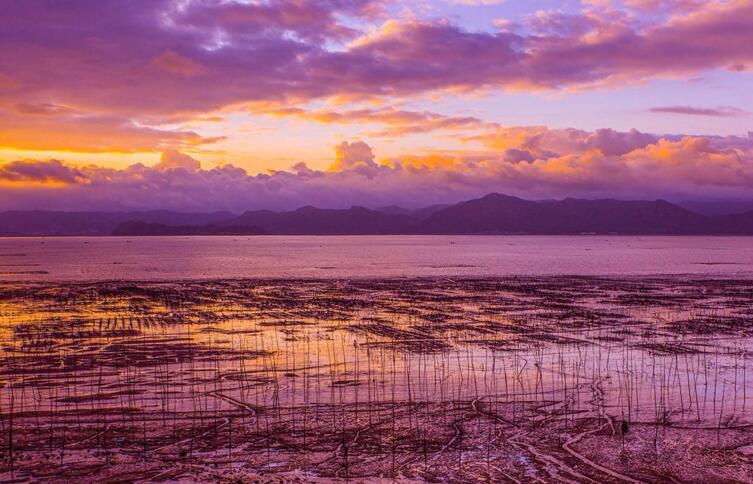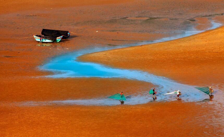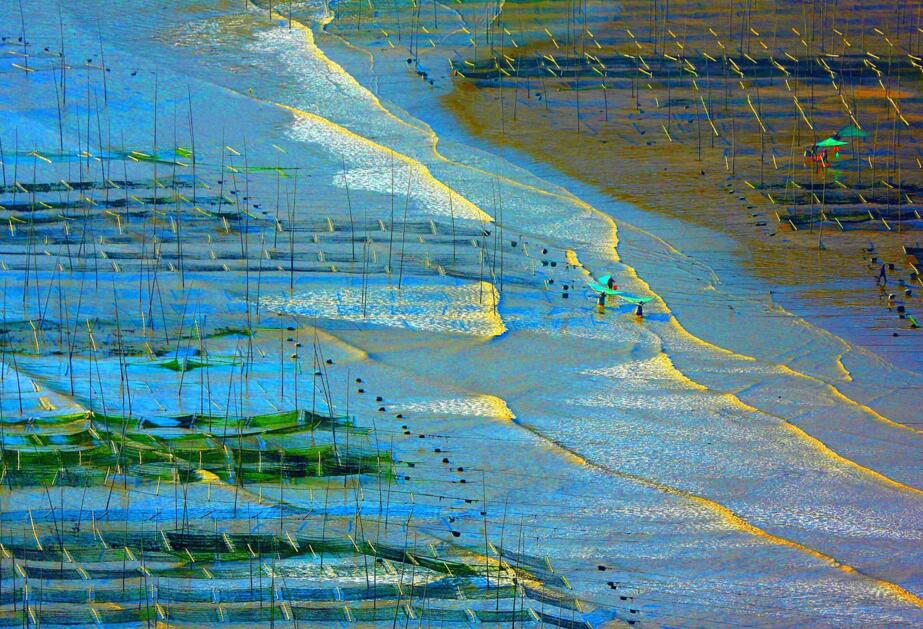這里四季的潮汐變化、天光云影、原生態的海事活動,讓美麗神奇的海域瞬間迥異奇妙無比。那詭譎神秘的滿海竿影,那夢幻般的海上家園,那鷗鳥掠過浪尖撲騰灘涂,那金色沙灘褐色礁叢,那港灣遠空的一抹紅云束光,海上日出日落……都是那樣靈動令奇絕。
