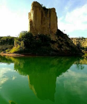 上午【大峽谷,一線天,通天柱,閆家寨,古城】這里黃土高原與丹霞地貌、綠色湖水干旱 荒 漠、千年古柳與深深峽谷,以及大自然的神奇、美妙真是讓人驚嘆不已!然后從峽谷底再盤旋而上,沿土路繼續前行,就到了閆家寨子,也是龍州古城的遺址,閆家寨子, 俗 稱閆寨子(上世紀三十年代的一個土匪山寨)。是由紅色的砂巖構成的特殊丹霞地貌。