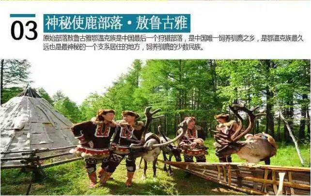13:30驅(qū)車前往神秘的敖魯古雅原始部落。敖魯古雅鄂溫克族是中國(guó)最后一支狩獵部落,是中國(guó)唯一飼養(yǎng)馴鹿的少數(shù)民族。五十年代以前,鄂溫克族獵民仍然保持著原始社會(huì)末期的生產(chǎn)、生活方式,吃獸肉、穿獸皮,住的是冬不防寒、夏不避雨的‘撮羅子’,以馴養(yǎng)馴鹿為生,也是中國(guó)最后一支原始部落!大家可以在這里親密接觸原始馴鹿,零距離接觸這只剛剛從原始部落直接轉(zhuǎn)為社會(huì)主義的部族。在2個(gè)多小時(shí)的親密接后,我們前往莫爾道嘎鎮(zhèn)入住,沿途可欣賞白樺林風(fēng)光。